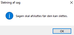 En sag skal afsluttes i Visual Administration, før den kan slettes.