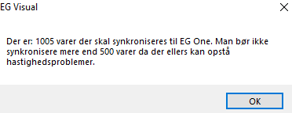 Vi anbefaler, at der kun udlæses 500 varer til EG One, dog max. 2000 varer for at undgå hastighedsproblemer.
