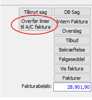 En ordre kan nu overføres til en acontofaktura på sagen ved tryk på "Overfør linier til A/C faktura".
