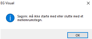 Det har været muligt at oprette en ny sag med mellemrums-tegn foran nummeret. Når man søgte på sagen blev den ikke fundet. Det er ikke tilladt længere.