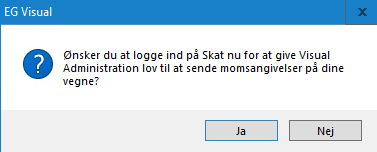 Trykker man JA, skal der første gang gives lov til, at Visual Administration sender momsangivelsen til SKAT.
