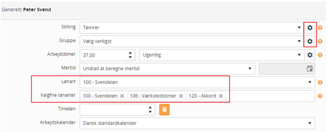 Sæt evt. stilling og gruppe på medarbejder - er stilling/gruppe ikke oprettet, kan de oprettes via tandhjulet