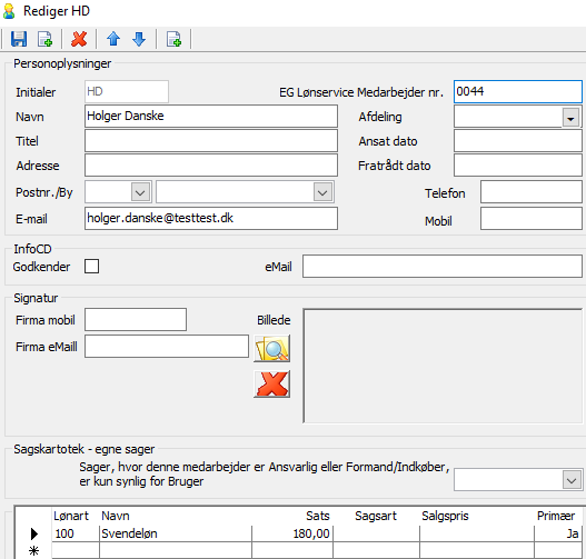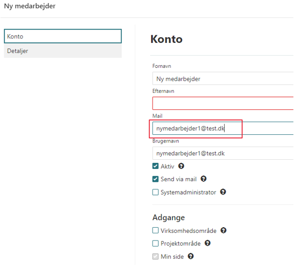 Det er vigtigt, at medarbejderens e-mail adresse er udfyldt og at påsætte en primær lønart.