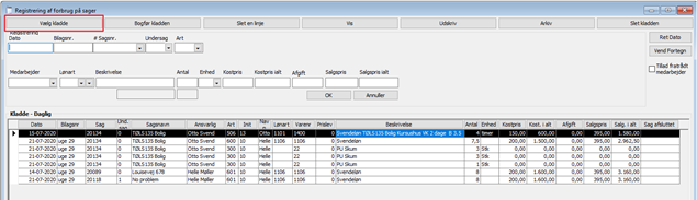 For at bogføre linjerne, trykkes Bogfør kladden. Når kladden er bogført, forsvinder linjerne fra kladden, og de kan nu ses, som posteringer på sagerne.