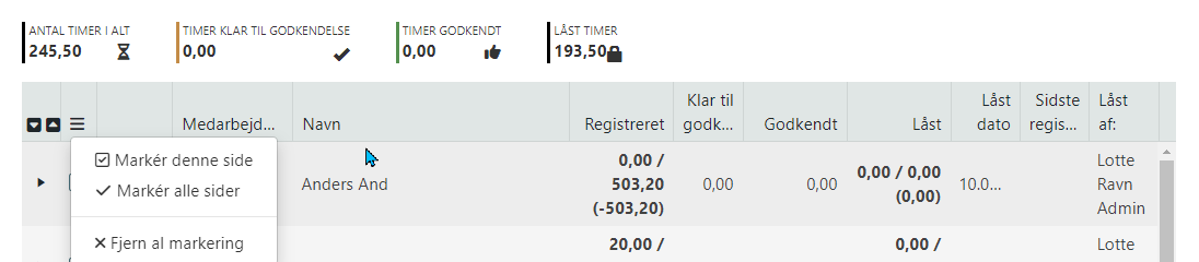 Her findes en rapport over historikken for de registrerede timeantal og de ændrede timeantal.