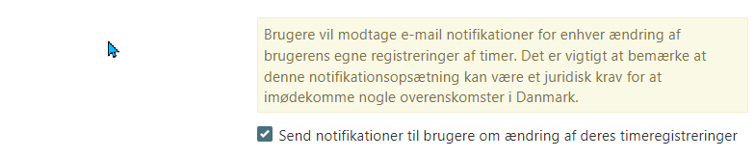 Tjek af i boksen ved send notifikationer til brugere om ændring af deres timeregistrering.