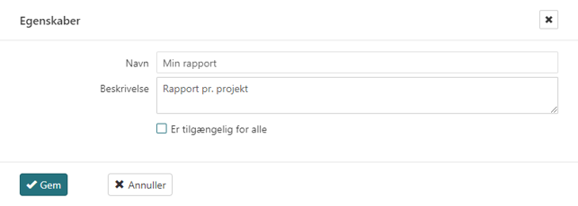 Hvis rapporten skal deles med andre, kan man sætte flueben i "Er tilgængelig for alle"