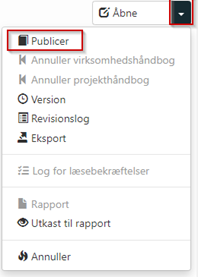 Skal håndbogen publiceret som Projektrutine, skal den først lægges på projektet.