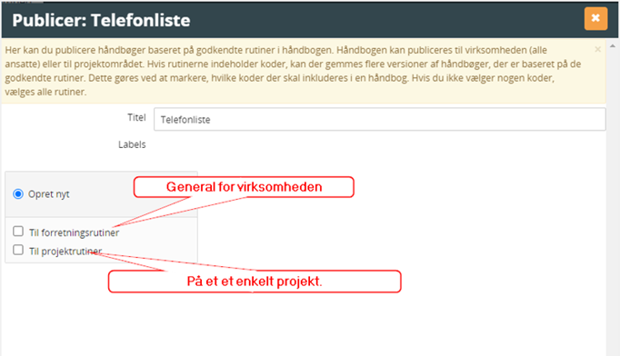 Derefter kan håndbogen synliggøres enten på et projekt eller som generel forretningsrutine for virksomheden.