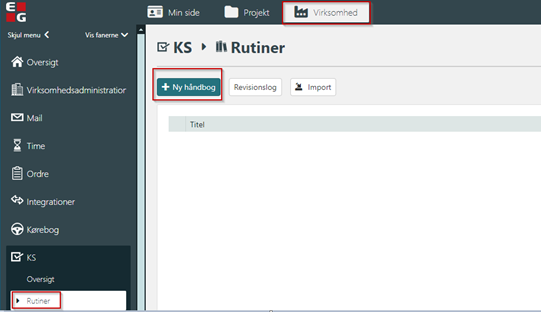 Gå i Virksomhed –> KS -> Rutiner –>Ny håndbog