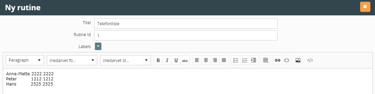 Klik på Ny rutine –> angiv Titel på dokumentet og skriv indholdet ind i rutinen.