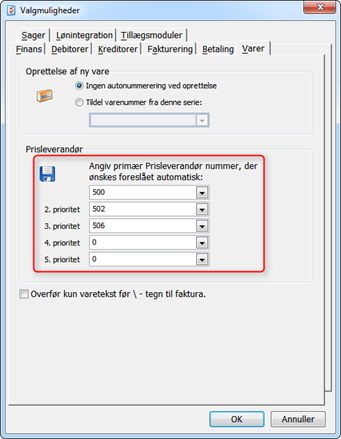 Med modulet El & VVS er det muligt at angive en prioritering af prisleverandører, ved sammenfald af varenumre.