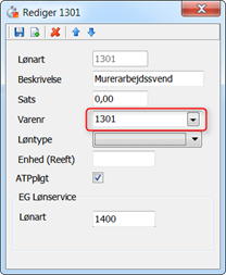 Til sidst skal du retur på den lønart du oprettede og tilføje varenummeret du lige har oprettet: