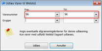 Udfylder du ikke noget i Varenr eller Gruppe, bliver alle varer/lønarter der er opsat til ExpandIT udlæst på samme tid.