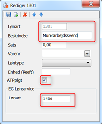 Hvis du benytter EG Lønservice, skal du huske nederst at indtaste den lønart, hvor medarbejderens timer skal overføres til lønbehandlingen: