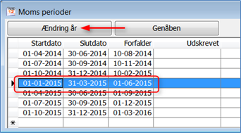 Stå på den periode hvorfra du vil ændre og tryk på knappen "Ændring år":