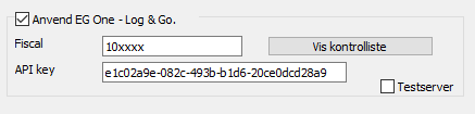 Sæt flueben i Anvend EG Xena – Log & Go og indsæt Fiscal samt API key fra EG Go.