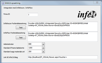 Skærmbilledet sættes op med få oplysninger til styring af integrationen med InfoCD: