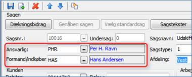 Gennemgå sagerne og kontroller felterne "Ansvarlig" og "Formand/indkøber".