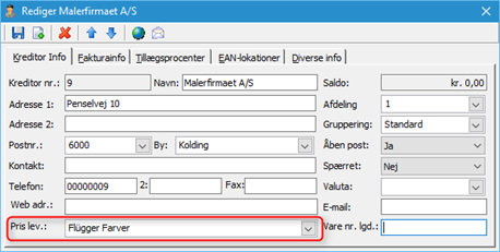 Har du indlæst prisfil fra leverandøren, kan du under fanen "Kreditor info" vælge prisformatet: