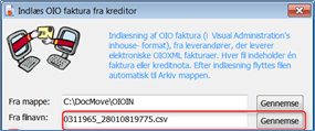 Indlæsning af leverede OIO-filer foretages under punktet Kreditor -> Indlæs OIO fakturaer (klassisk menu: Funktioner -> Kreditorer -> Indlæs OIO-faktura).