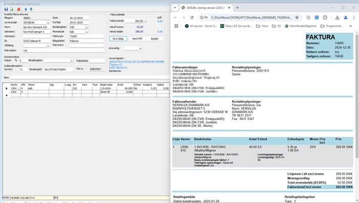 Bilaget vil blive vis på købsfaktura, posteringer på kreditor og på finansposteringer.