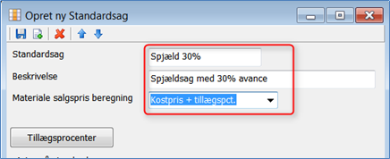 Opret/rediger standardsag: