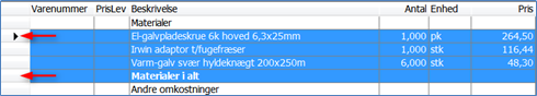 Ønskes tekstlinjer indsat mellem øvrige linjer, udfyldes udelukkende "Beskrivelse" på disse linjer.