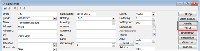 Når tilbuddet er klar til afsendelse, vælges knappen til højre "Tilbud". Du kan også vælge at sende den som et "Overslag", eneste forskel er overskriften på dokumentet til kunden.