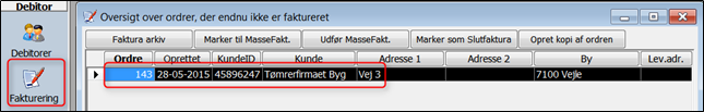 Metode 2: Du kan også vælge Debitor -> Ordreoversigt (klassisk menu: Funktioner -> Debitorer -> Fakturering). I bunden skal du vælge "Tilbud"