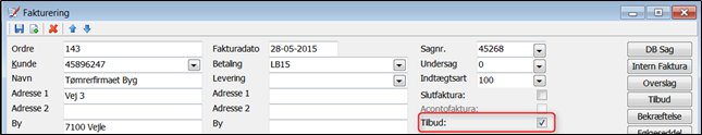 - Tilbuddet bliver liggende under Tilbud (under Debitor -> Ordreoversigt)