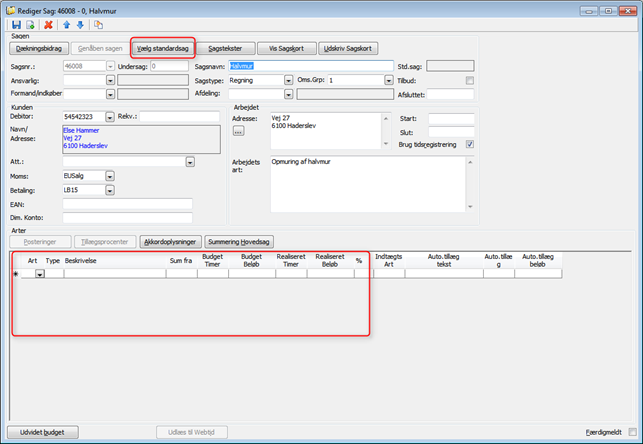 Uanset hvilken metode du anvender, skal du starte med på de pågældende sager at gå ind og vælge Standardsag: