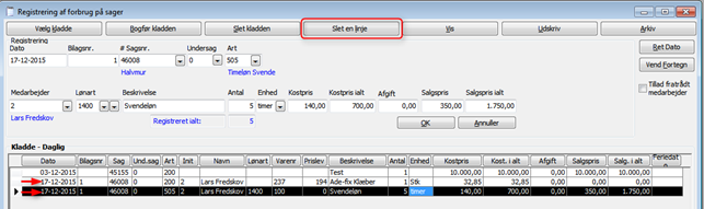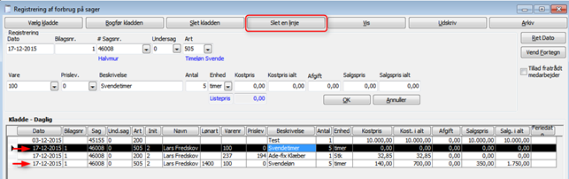 Start i sagskladden med at slette samtlige registreringer på den aktuelle sag. HUSK evt at udskrive kladden før du begynder at foretage rettelser.