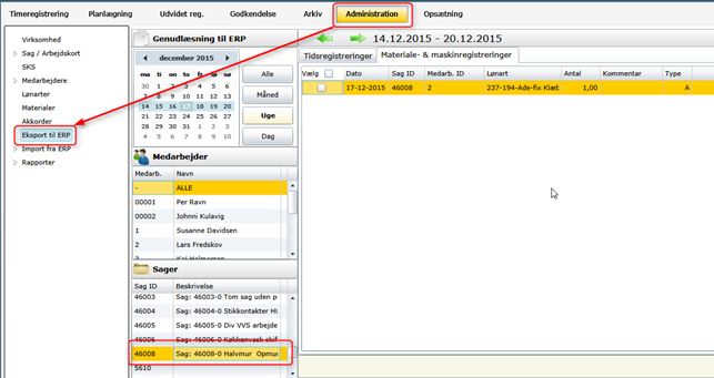 Log nu på Webtid (denne funktion kræver at man er administrator i Webtid), og vælg Administration -> Eksport til ERP.