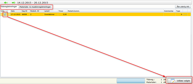 Marker nu de linjer der ønskes genudlæst til Visual – HUSK evt. også fanen Materialeregistreringer: