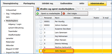 I Webtid vælges Administration -> Medarbejder.