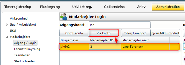 Gå derefter ind under Administration -> Medarbejder -> Adgang / Login