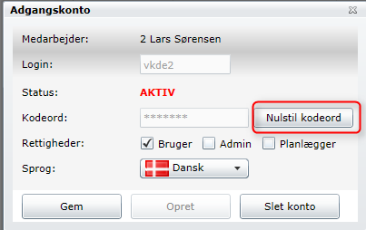 Prøv evt at logge på den aktuelle medarbejder, for at teste nulstillingen foretaget korrekt.