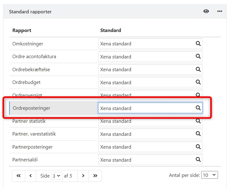 Hvis du har en brugertilpasset version af rapporten, men du ønsker at skifte over til den nye standard, skal du i rapportvalget for Ordreposteringer vælge Xena standard. Du kan her læse hvordan du skifter rapportvalg.