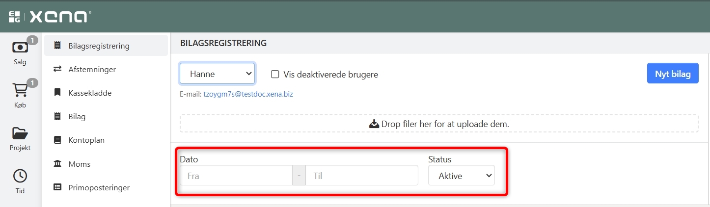 - Samtidig er filteret for bilagsstatus blevet flyttet, så det nu ligger samlet med datofilteret for en mere intuitiv brugeroplevelse