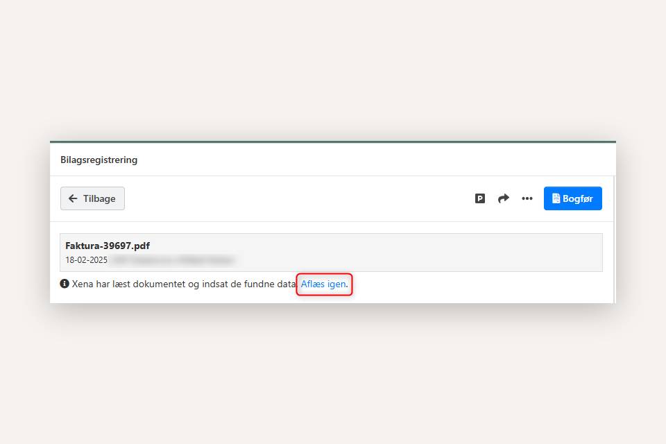 - Funktionen "Aflæs igen" er samtidig skjult for brugere uden rettigheder til finansbogføring, for at sikre, at kun autoriserede brugere kan anvende den.