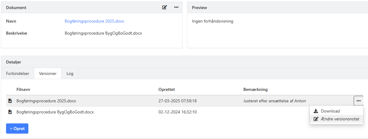 - Tryk på Opret, og upload den nye version af bogføringsproceduren.