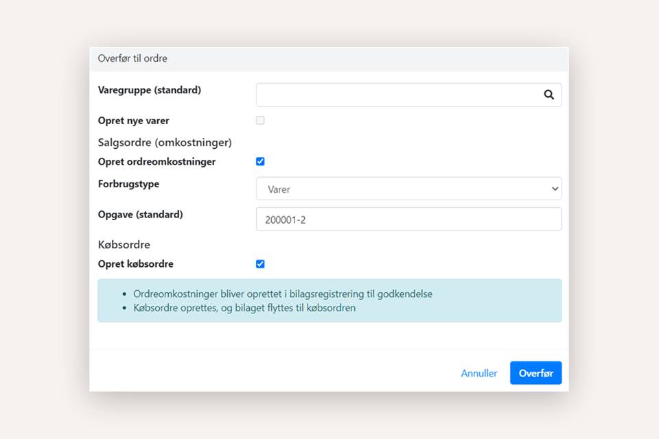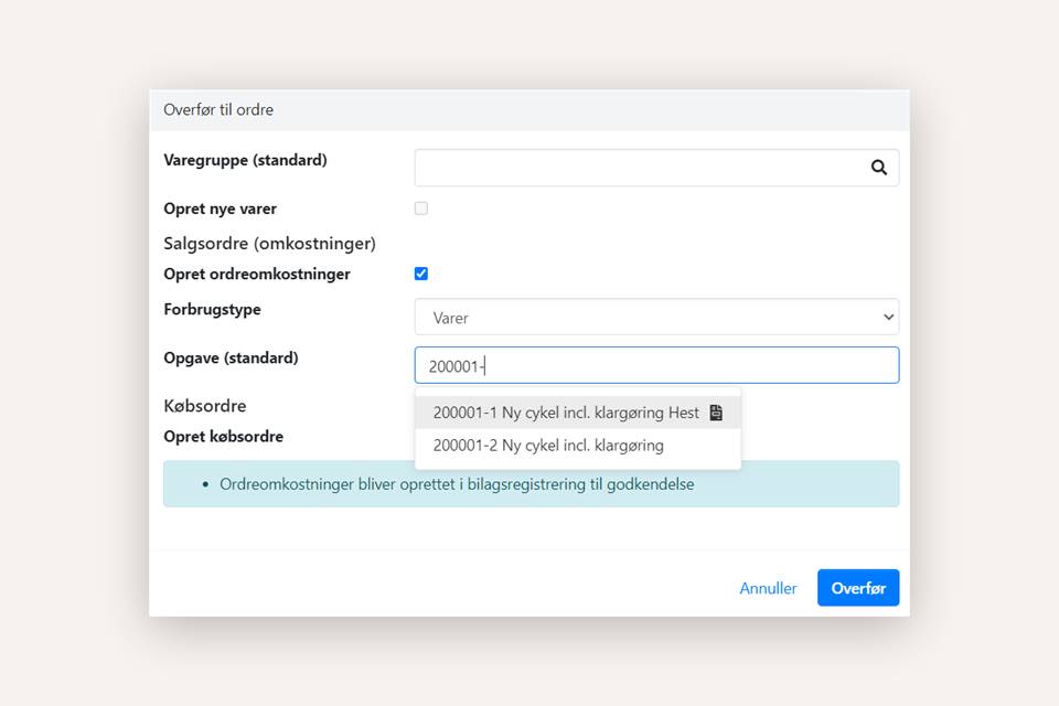 2.A: Overfør omkostning til en salgsordre