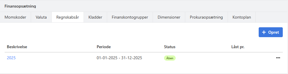 Når du opretter et nyt regnskab i Xena, skal du som noget af det første have oprettet din første regnskabsperiode. Dette gør det muligt for dig at begynde at bogføre og udstede fakturaer, uden yderligere opsætning. For at oprette regnskabsperioder skal du gå til menuen Opsætning > Finansopsætning > Regnskabsår.