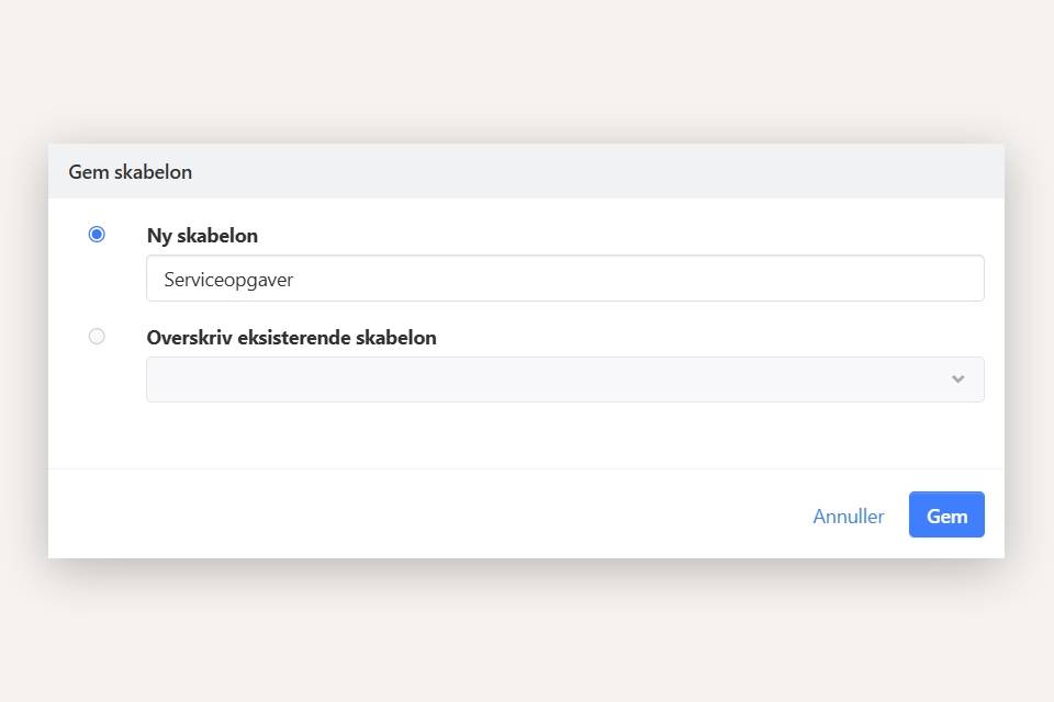 • Overskriv eksisterende skabelon
