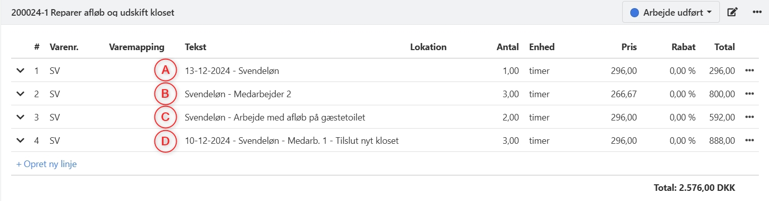 - Medarbejdernavn er tilføjet (på medarbejderlinjer)