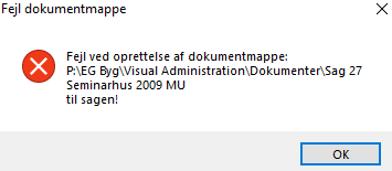 Hvis man har sat stien op til sagsdokumenter på et fællesdrev på egen server og der ikke er adgang til fællesdrevet, får man en fejl. Fejlbeskeder er rettet, således man får oplyst, hvilken stien det drejer sig om.