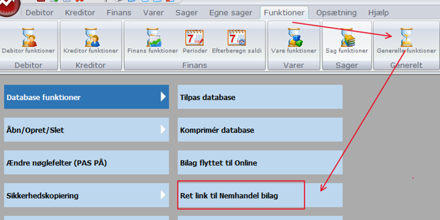 Gå i Funktioner -> Generelle funktioner og Ret link til Nemhandel bilag