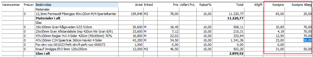 Der kan rettes i kostpris og kostpris tillægs%, således salgsprisen hæves eller sænkes.