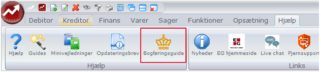 Bogføringsguide / konteringsvejledning er også mulig at finde under Hjælp.